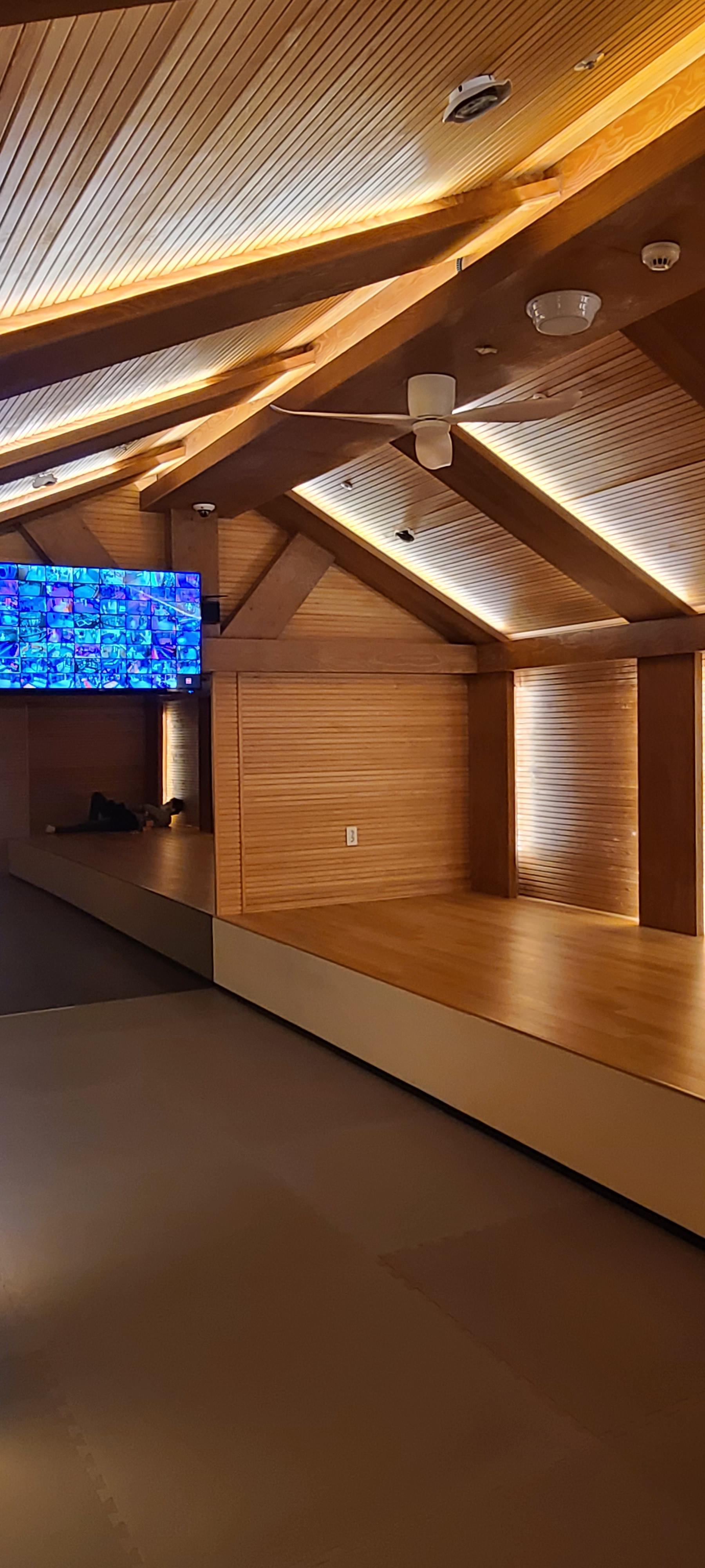 또 cctv를 빼곡하게 담은 스크린이 있는데 저는 못 찾을 것 같습니다. 그래도 저런 건 없는 것보다 훨씬 좋은 것 같습니다. 놀이터에서는 탈 수 없는 긴 미끄럼틀도 있고 공연이나 이벤트가 열리는 댄스 스테이지도 있었습니다.