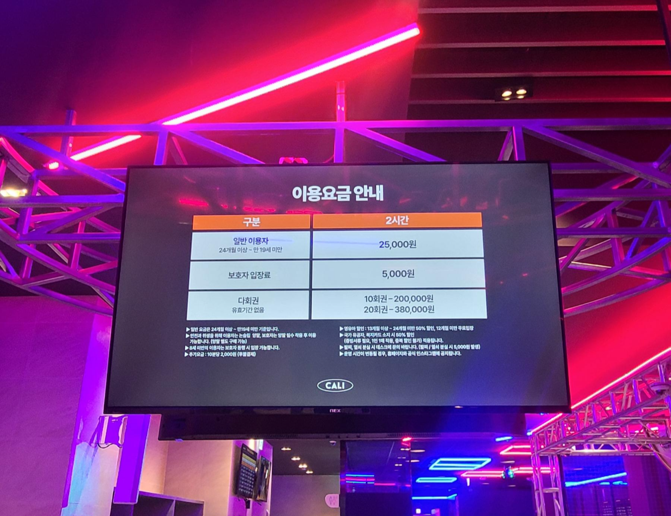 입장료는 아이는 2시간 25,000원이고 성인은 5,000원으로 생각보다 합리적인 가격이었습니다. 위치는 광교중릉 지하 상가에 있고 전용면적이 2,500평으로 원래는 스파 찜질방이었지만 리뉴얼하여 오늘 오픈을 했습니다.