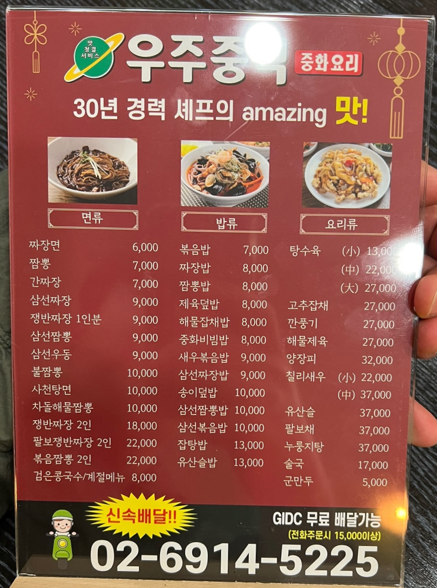 배달가능하고 만약 같은 건물 배달이라면 무료로 배달이 가능하다고 하니 알아두시면 좋겠습니다. 저는 바로 옆 건물이라 아쉽게도 무료배달은 못 받겠습니다. 저는 이곳에 온 지 얼마 되지 않아 이제 서서히 맛집을 찾아다니고 있습니다. 그중에 위에 포스팅한 추어탕집이 첫 번째로 맛집이었고 이어 두 번째가 이 우주중식이었습니다.