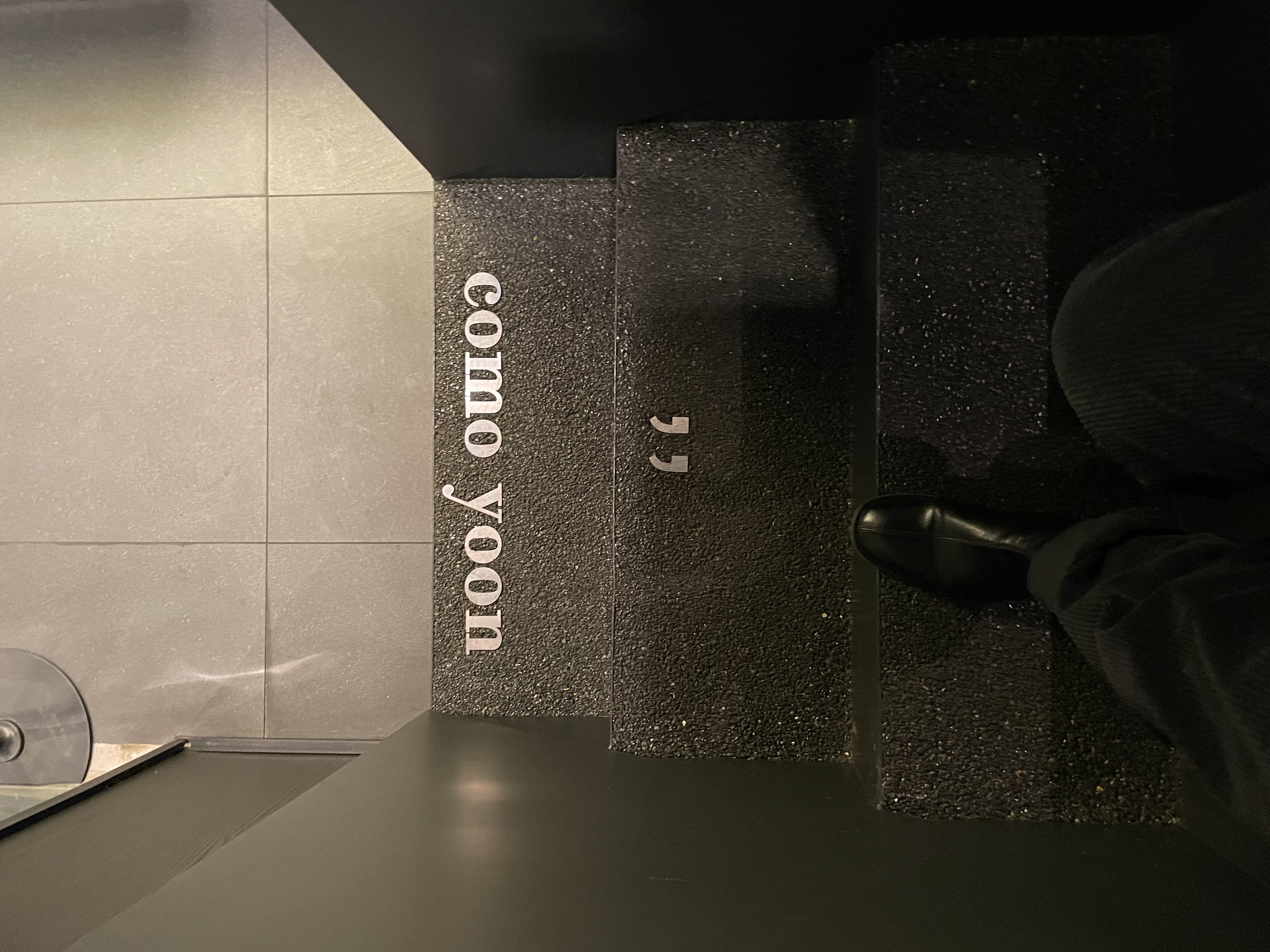 계단 사이에 거울이 있어 사진 찍기 좋은 곳이 나옵니다. 거울은 못 찍고 내려오는 발만 찍었네요.