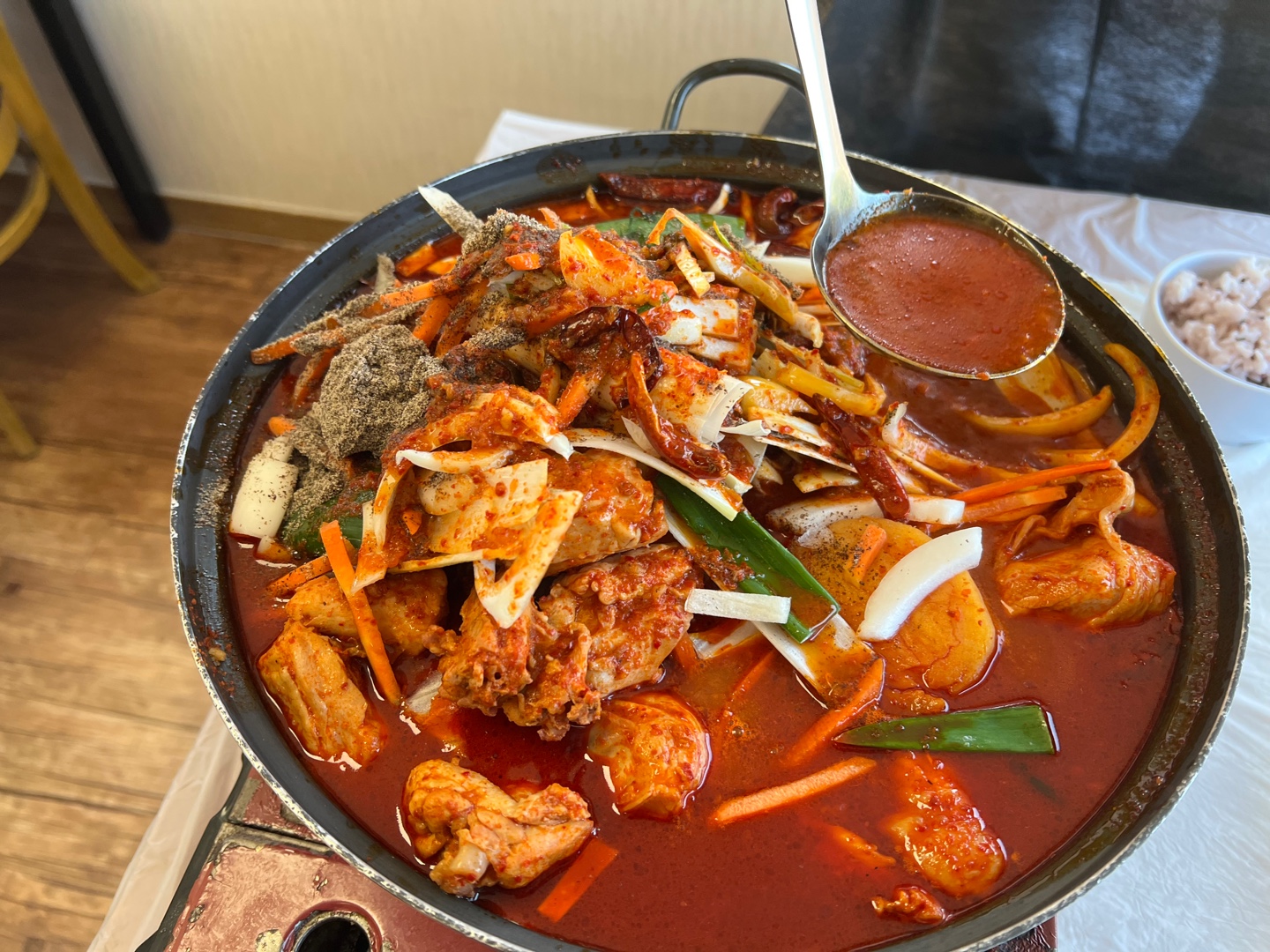 배가 고파서인지 아니면 다 익히고 나와서인지 한 20분은 기다린것 같습니다. 기다림이 꾀 길었지만 비주얼을 보고 굉장히 만족했습니다. 맵지 않고 딱 좋은 정도로 나오고 양도 생각보다 많았지만 커플 둘이서 다 먹고 나왔으니 가족단위로 가면 메뉴 한 개는 더 시키는 게 맞는 것 같습니다.