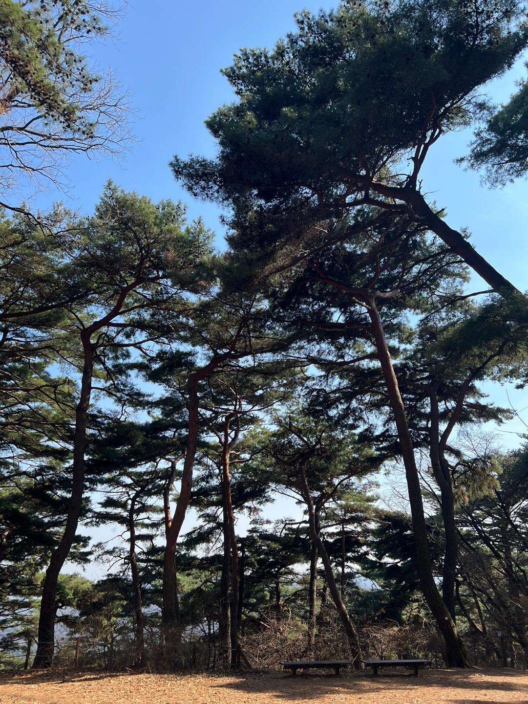 하지만 중간마다 쉴곳이 많이 마련되어 있었고 공기가 너무 좋아서 한번 올라가 보기로 했습니다. 그런데 점점 산책이 아닌 등산을 하고 있는 것 같다는 생각에 마음이 불안하기 시작했습니다.