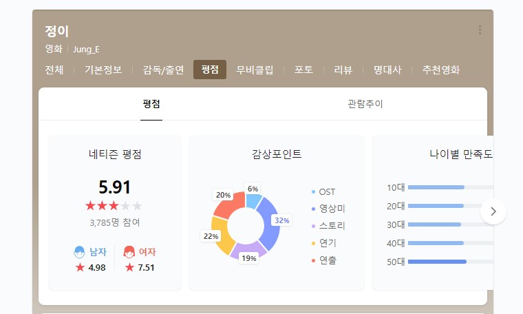 사실 영화의 평점 자체는 좋지 않습니다. 네이버 평점만 보아도 약간 실망이라는 사람들이 많았고 몰입도를 떨어뜨리는 대사들이 있다고는 하지만 강수연님의 주연 연기를 보여준 감독님에게 감사하다는 평도 많았습니다.