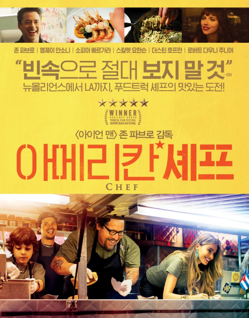 개봉한 지는 오래되었지만 아직도 요리영화하면 많은 분들이 이 영화를 떠올리는데 존 파브로 감독이 연출한 영화입니다. 존 파브로 감독은 아이언맨 1,2를 연출하면서 그때 해피 호건으로 연기를 한 적이 있는데 누군지 다들 아실 거라 생각합니다. 이렇게 재능이 많은 사람들을 보면 참 부럽습니다.