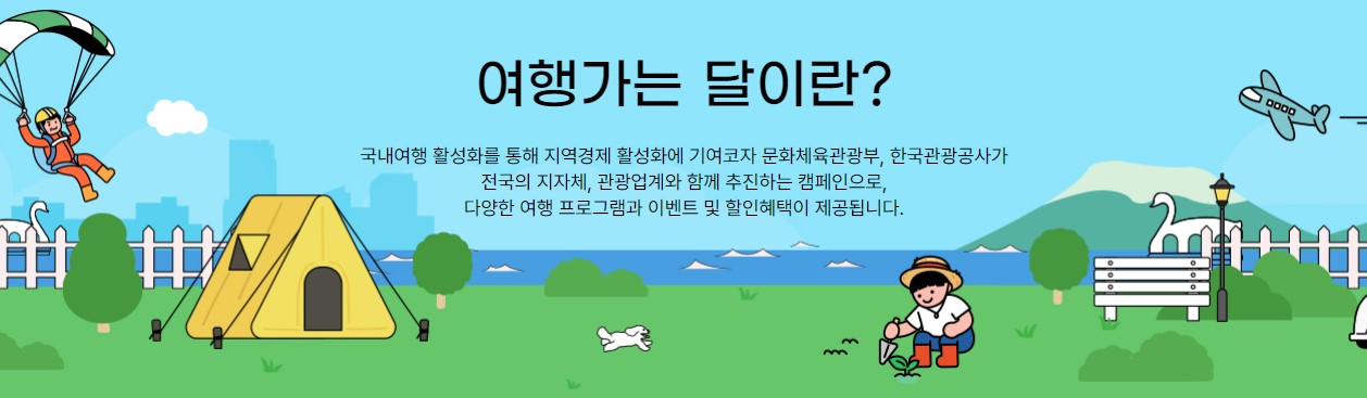 침체된 내수 경제를 되살리자는 취지로 전국의 지자체, 관광업계가 문화체육관광부, 한국관광공사와 함께 여행을 장려하는 캠페인으로 숙박업소뿐만 아니라 국내 항공권과 KTX 할인도 함께 합니다.