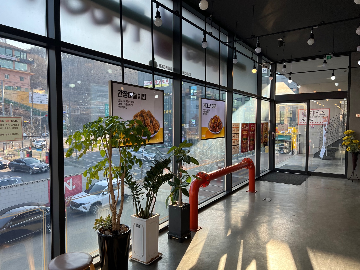 어차피 이곳의 메뉴야 다들 아실 테고 치킨 햄버거라 인기가 항상 많은 곳이기 때문에 메뉴는 생략하고 제가 이곳을 소개하는 이유는 매장이 높게 위치하고 주위에 높은 건물이 없어서 매장 뷰가 너무 좋았기 때문입니다.