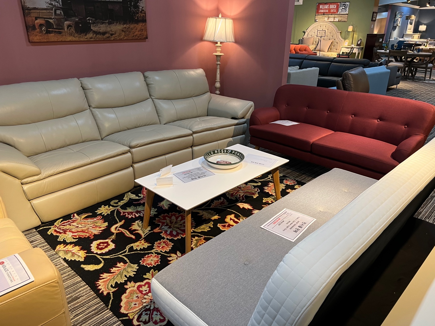 아리아퍼니쳐는 중저가 가구 브랜드로 사무실이나 원룸, 이케아에서 많이 볼 수 있는 가구들이 전시되어 있었고 미라지 퍼니쳐는 수입가구로 엔틱하고 빈티지한 가구들이 많이 있었습니다.