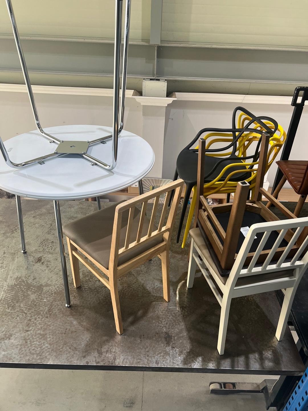 전시용 상품과 리퍼상품들은 가격이 훨씬 저렴했는데 그중에 스크래치가 더 있는 가구들은 좀 더 할인을 해주어서 엄청난 할인혜택을 받을 수 있습니다. 캐비닛 같은 제품들도 있고 심플한 체어들도 많이 있었습니다. 저희는 이곳에서 2~3만 원 정도에 의자들을 구입했습니다.