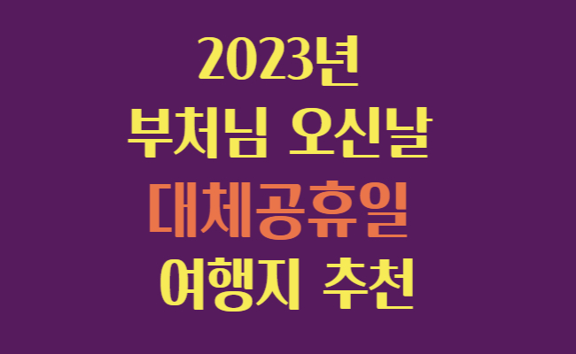 직장인들에게 아주 좋은 소식이 발표되었습니다. 바로 올해부터 부처님 오신날 대체공휴일 확정이 되면서 다가올 5월에는 3일 연속으로 쉬는 날이 두 번이나 있기 때문입니다. 직장인들에게 너무나 행복한 소식이 아닐까 싶습니다. 그래서 오늘은 대체공휴일에 갈만한 여행지를 추천해 드립니다.