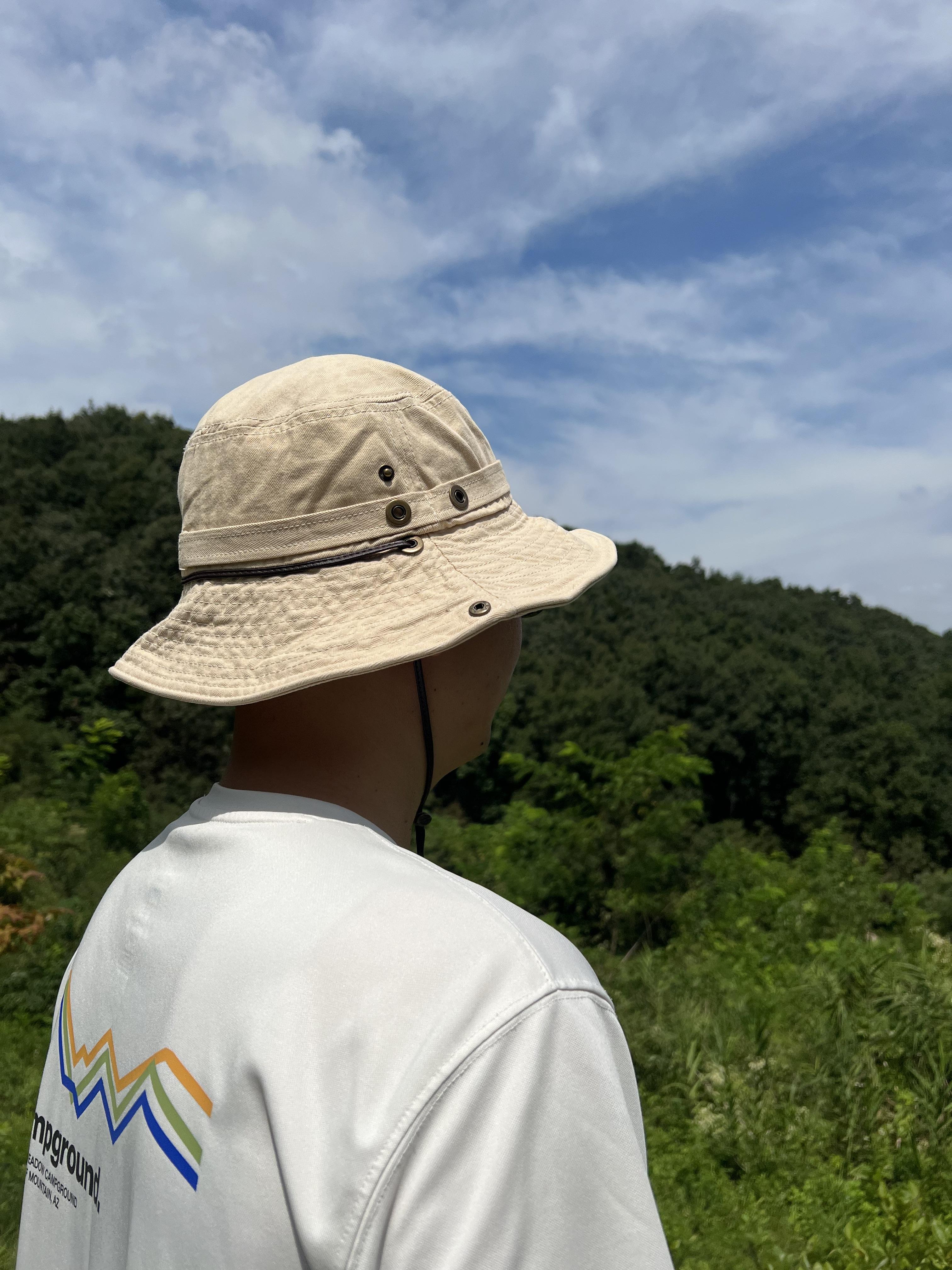 네이비도 컬러가 햇빛에 비출때마다 컬러가 강도가 달라지는데 고급스럽게 정말 이쁘게 나왔습니다. 그리고 정글모자에서 블랙 다음 가장 무난한 컬러 베이지 컬러도 캠핑할 때 쓰는 용도로 인기가 많았습니다.