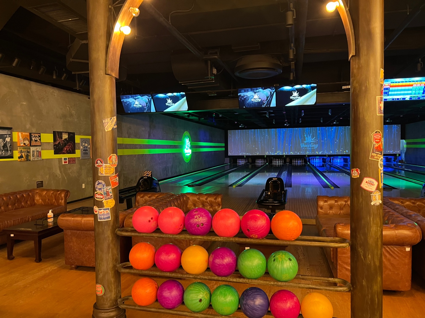 제 기억으로는 6개 레일이 있었던 것 같습니다. 소파 자리는 3개 정도 있었던 것 같고 저기서 음료나 맥주 한잔씩 즐기시면 됩니다.