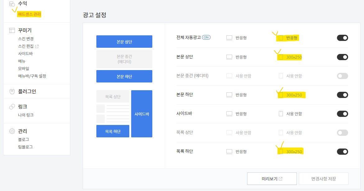 티스토리 모바일 스킨을 완전히 없애서 광고 송출하는 방법