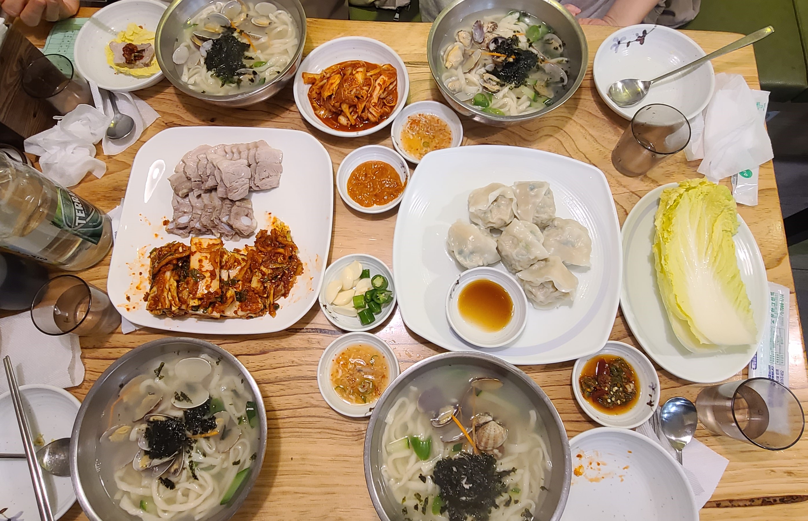 네 명이서 먹기에는 칼국수에 만두, 보쌈 이렇게 시키면 딱 배부르게 잘 먹을 수 있습니다.