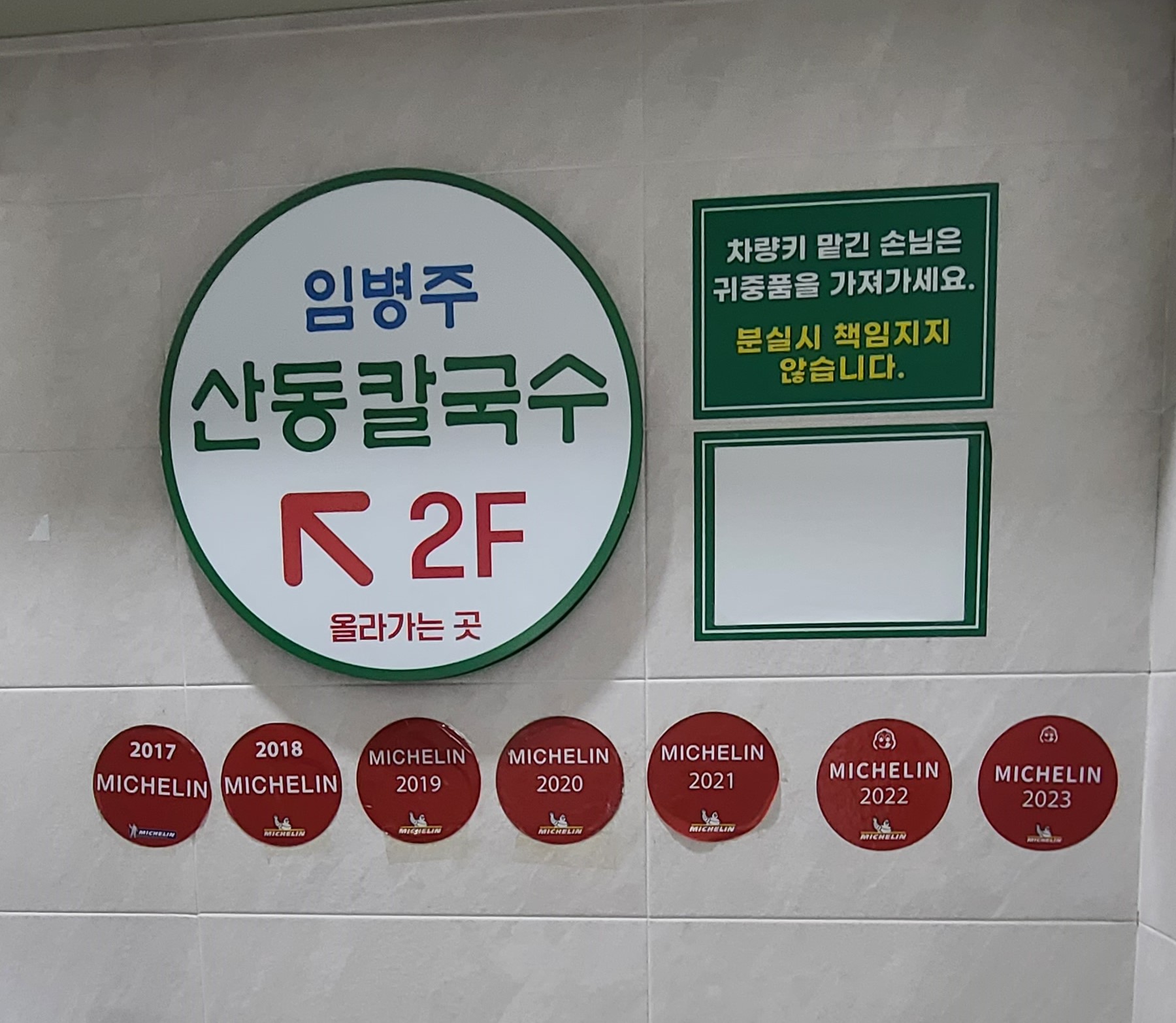 2층으로 가는 길에 2017년부터 미쉐린 가이드에 선정된 것을 알 수 있는데 벌써 2023년에도 선정되었으니 정말 양재역 맛집은 확실한 것 같습니다. 저도 지인 추천으로 가보았는데 운이 좋았는지 별로 기다리지 않고 바로 자리에 앉을 수 있었습니다.