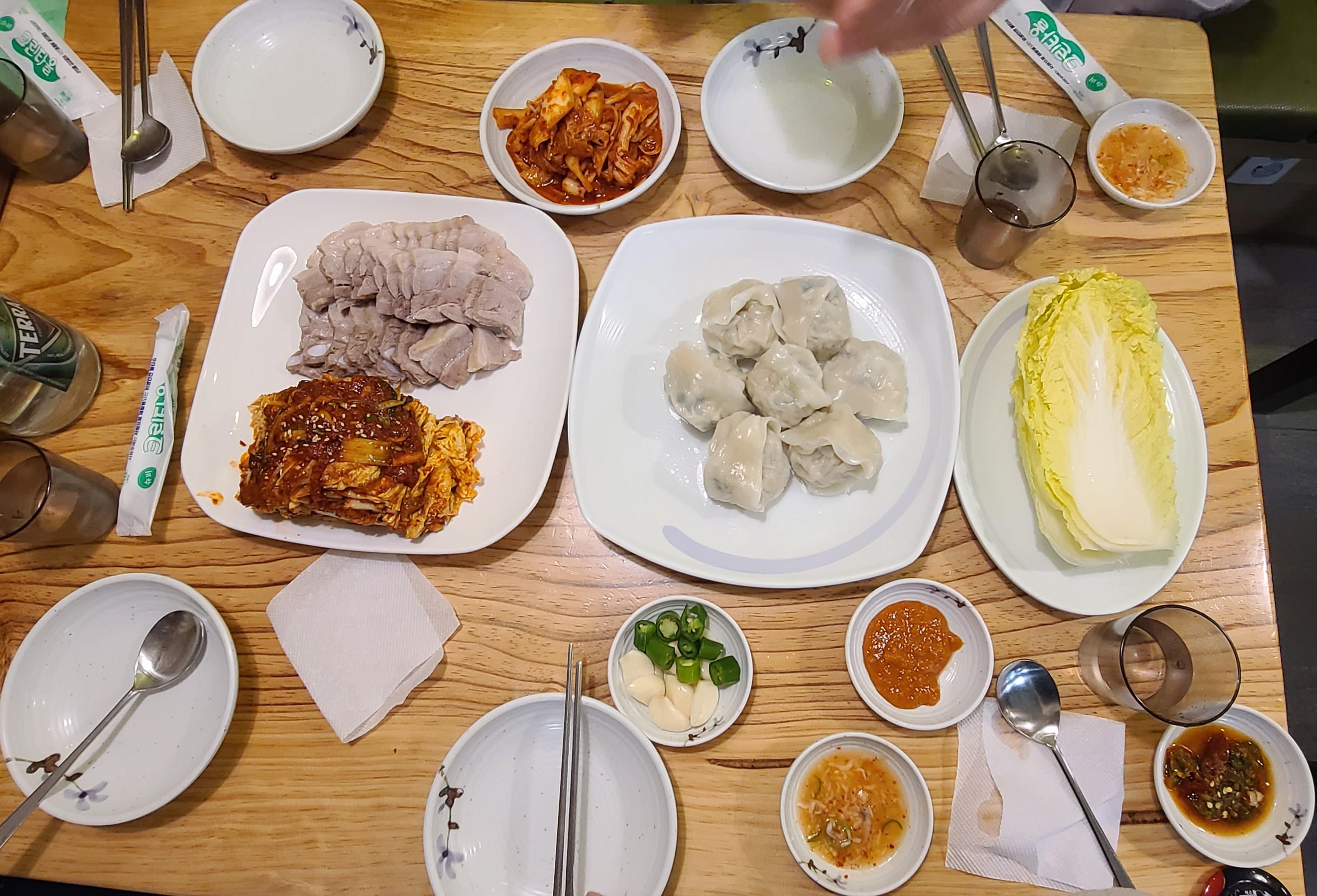 네 명이서 먹기에는 칼국수에 만두, 보쌈 이렇게 시키면 딱 배부르게 잘 먹을 수 있습니다.
