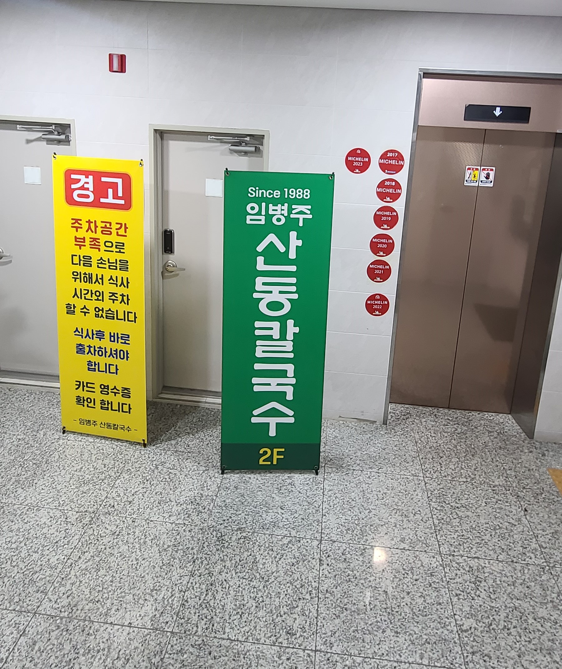 2층으로 가는 길에 2017년부터 미쉐린 가이드에 선정된 것을 알 수 있는데 벌써 2023년에도 선정되었으니 정말 양재역 맛집은 확실한 것 같습니다. 저도 지인 추천으로 가보았는데 운이 좋았는지 별로 기다리지 않고 바로 자리에 앉을 수 있었습니다.