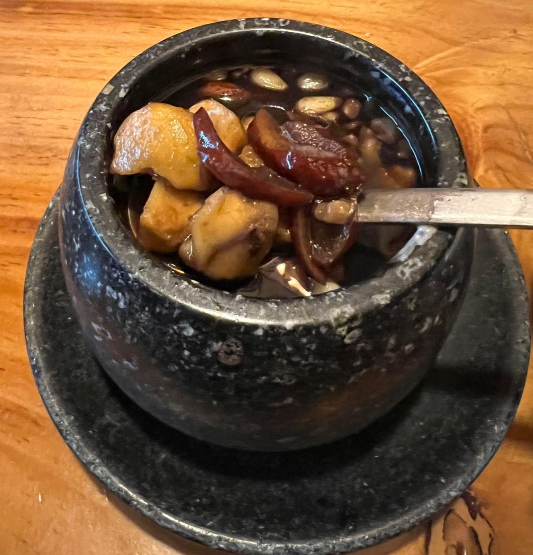 쌍화탕은 굉장히 건강해지는 맛이 났습니다. 쓰거나 하진 않았지만 돌솥잔이라고 하나요?? 너무 뜨거워서 마시기 힘들었습니다. 어른들은 정말 좋아하실 것 같습니다.