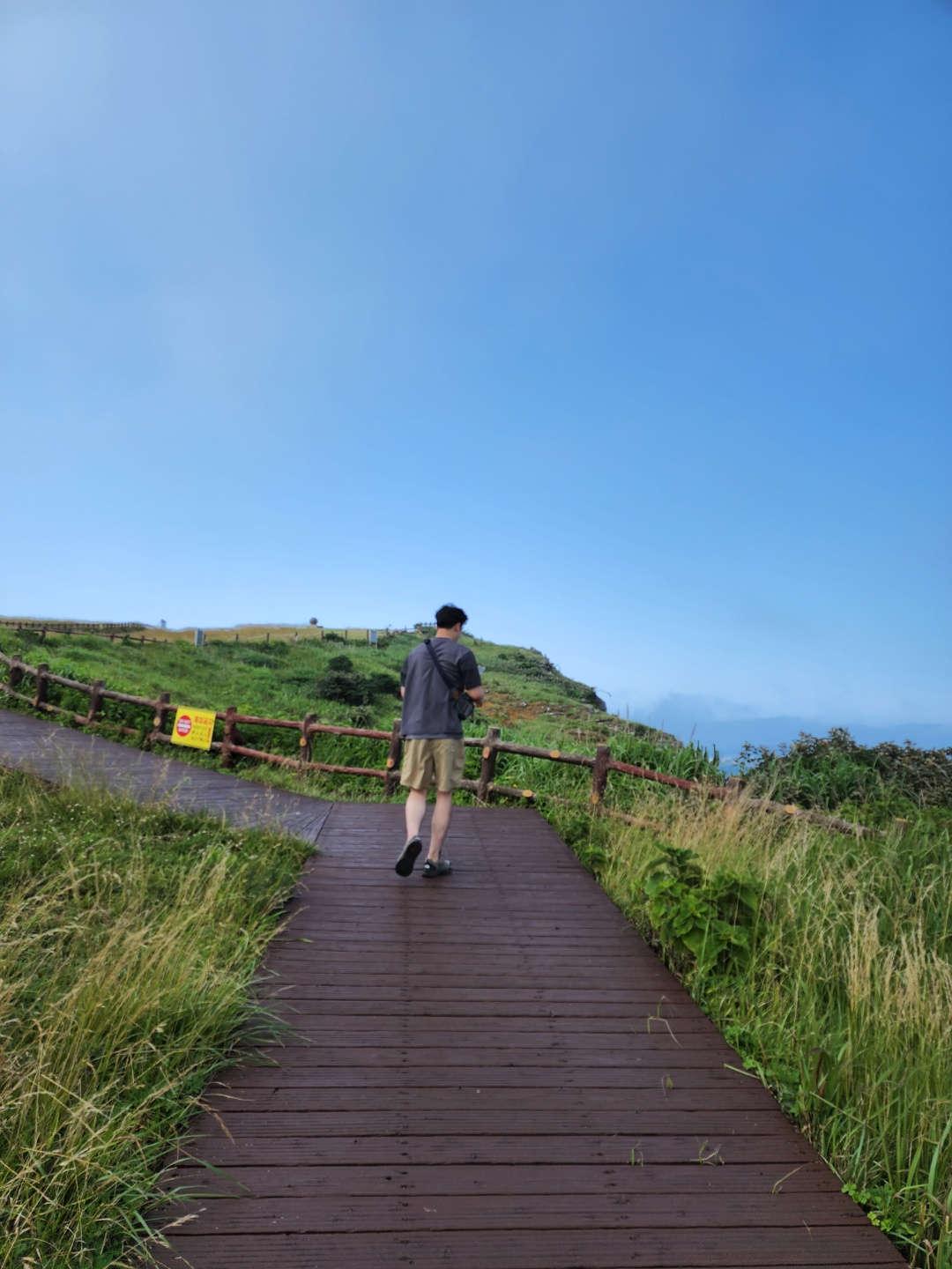 아침에 서두른 덕분에 먼저 온 차는 한 대 있었고 그마저 주변 상인의 차인것 같았습니다. 입구에 가보니 아무니 없더라고요. 이번 우도 여행은 정말 숙박을 하길 잘했다는 생각을 했습니다. 소머리오름을 통째로 빌린 것처럼 아무도 없어 정말 세찬 바람만 저희를 반겨주었습니다.