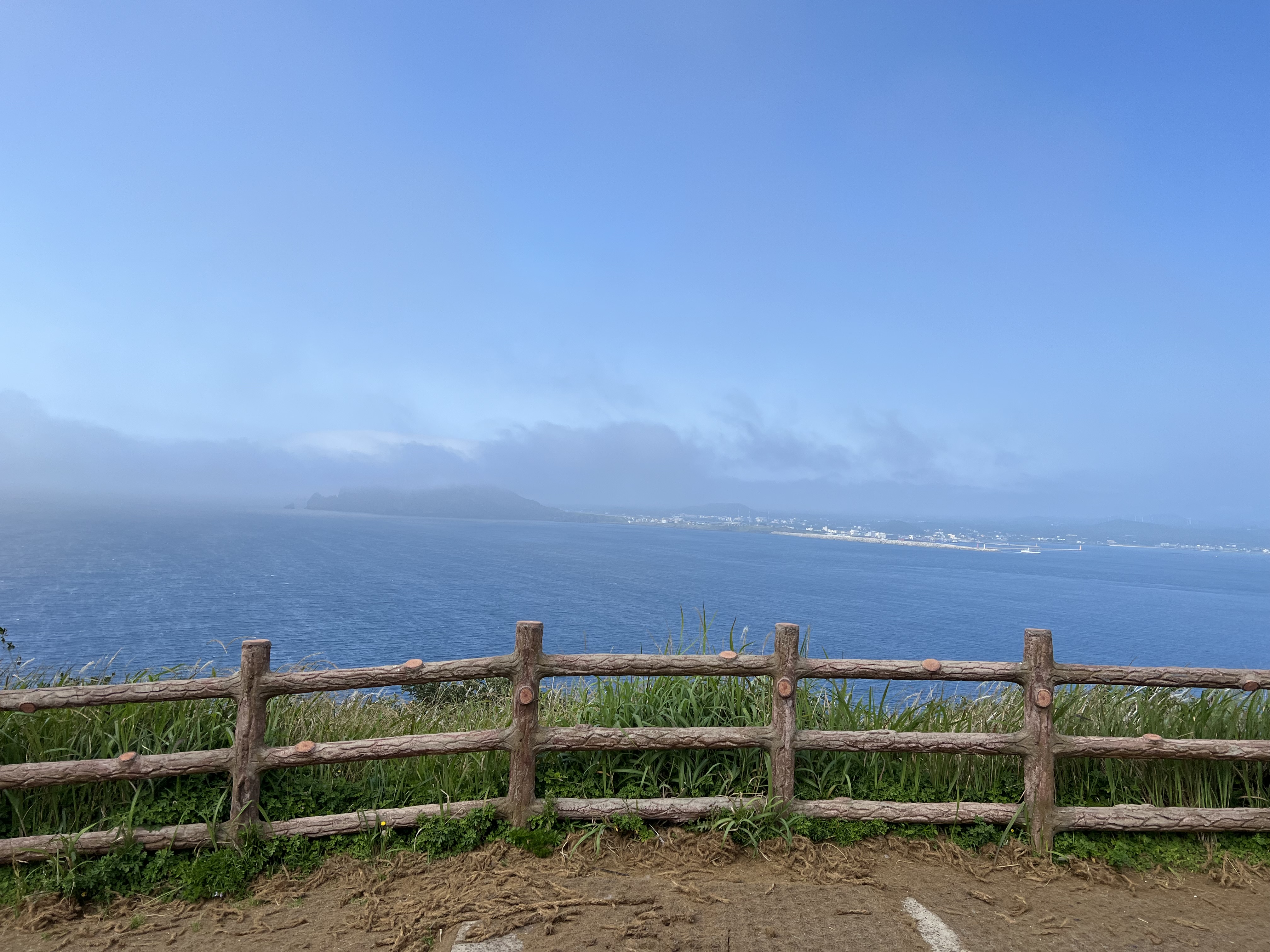 안개가 조금 걷히니 멀리서 제주도가 보이기 시작합니다.