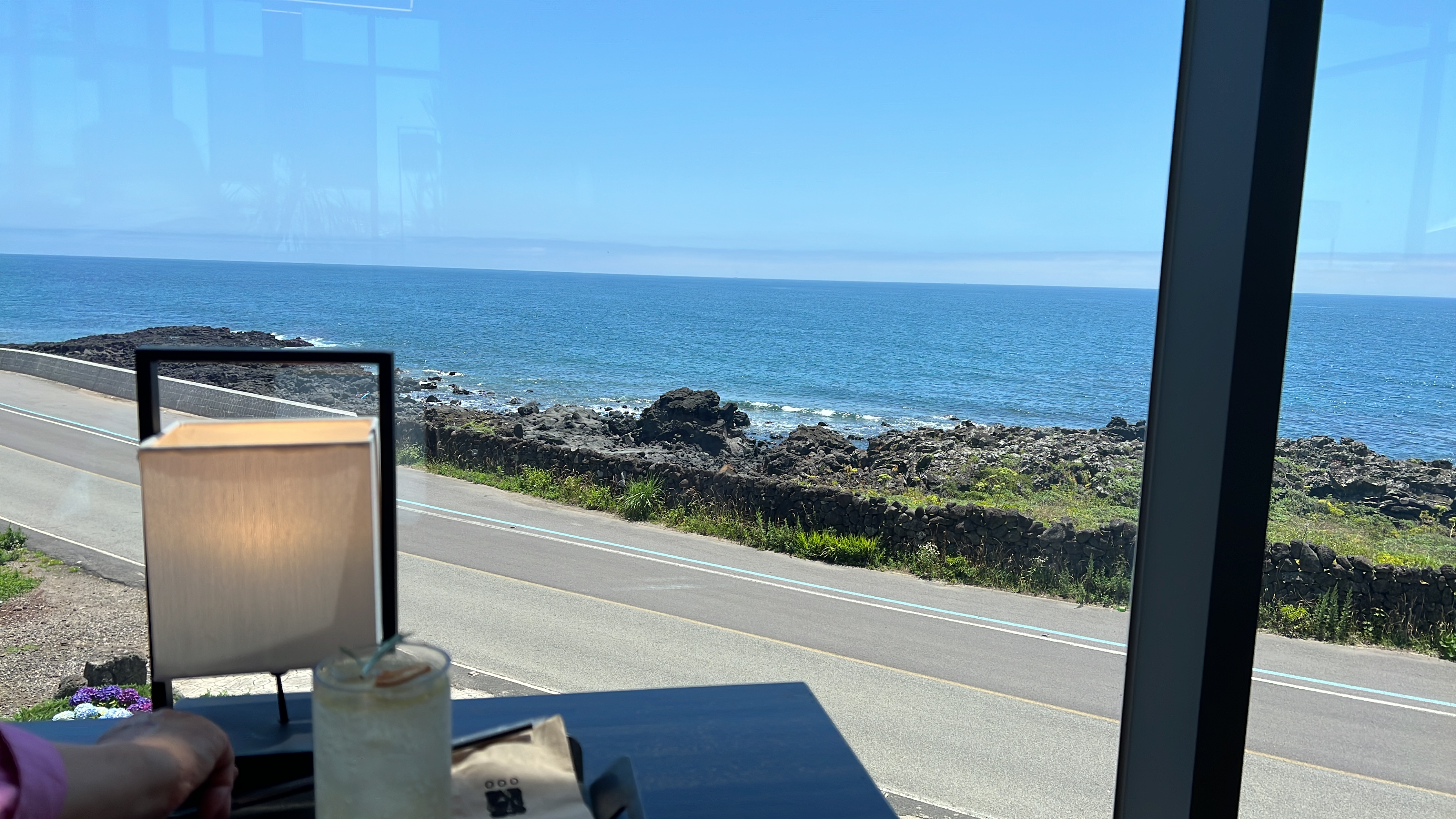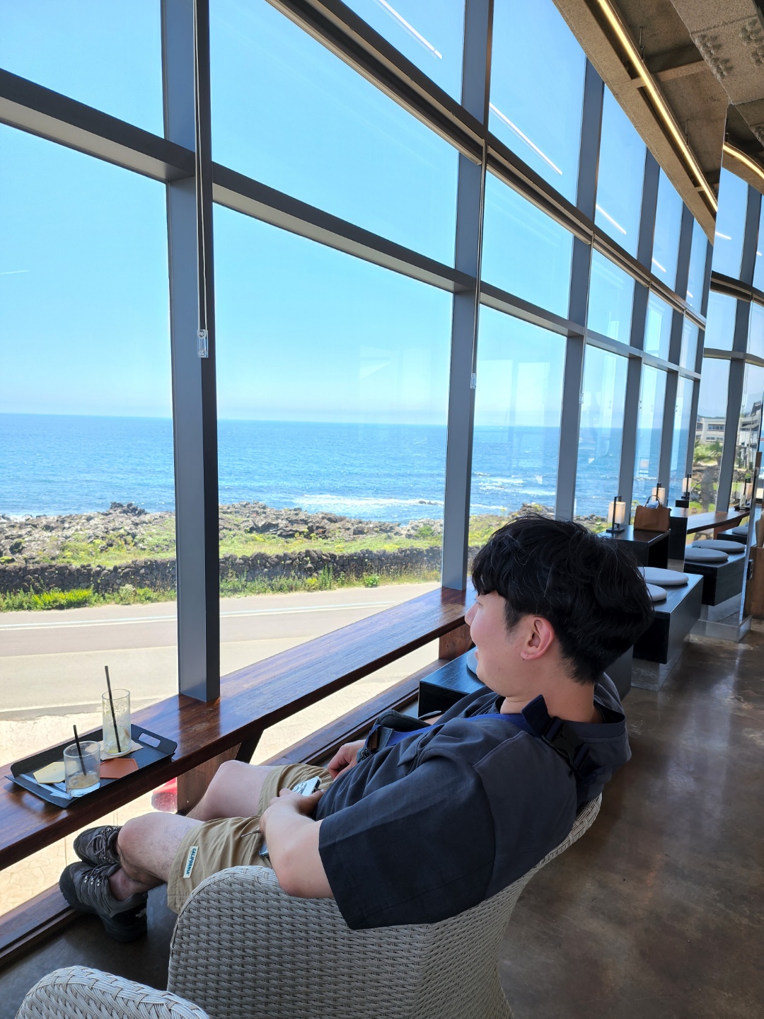 전 여행을 가면 전망 좋은 곳에서 멍 때리며 앉아 있는 걸 좋아합니다. 이 날도 바다와 구름 보면서 멍 때리느라 시간이 가는 줄도 모르고 계속 앉아 있었습니다. 여기는 2층인데 전면부가 전부 창으로 되어있어 바다가 시원하게 보였습니다. 창가에도 자리가 많았고 내부에도 자리가 많았습니다.
