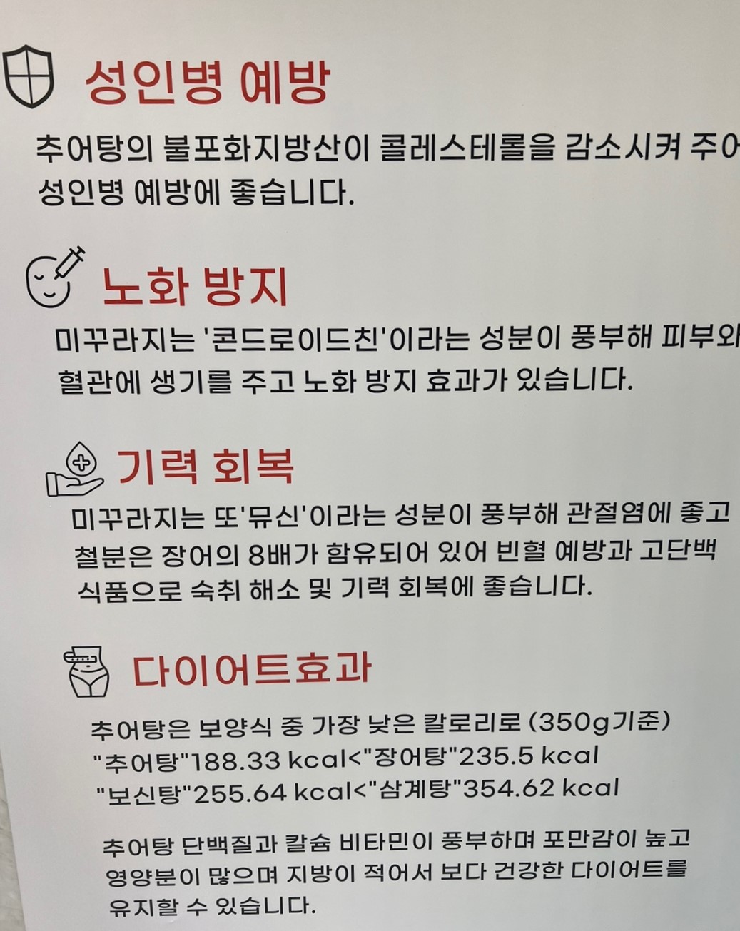 환자들에게 특히 추천하는 이유는 추어탕은 성인병 예방과 노화방지, 그리고 기력회복을 해주니 환자들에게는 꼭 필요한 보양식이기 때문입니다. 중앙대광명병원에 가시는 분들은 점심식사로 이곳을 추천합니다.