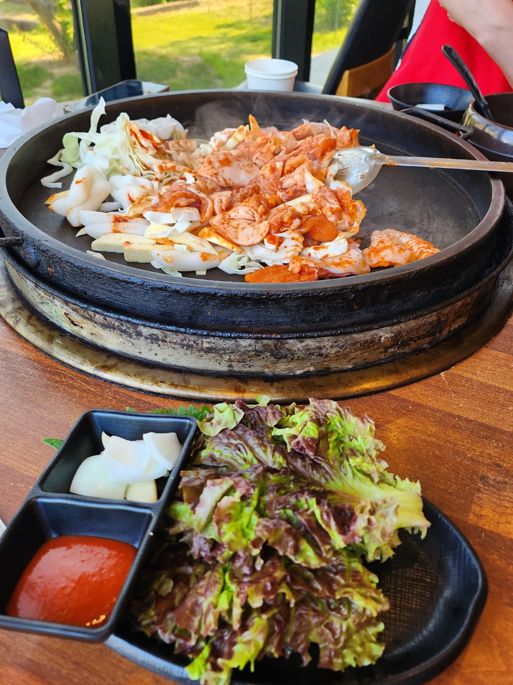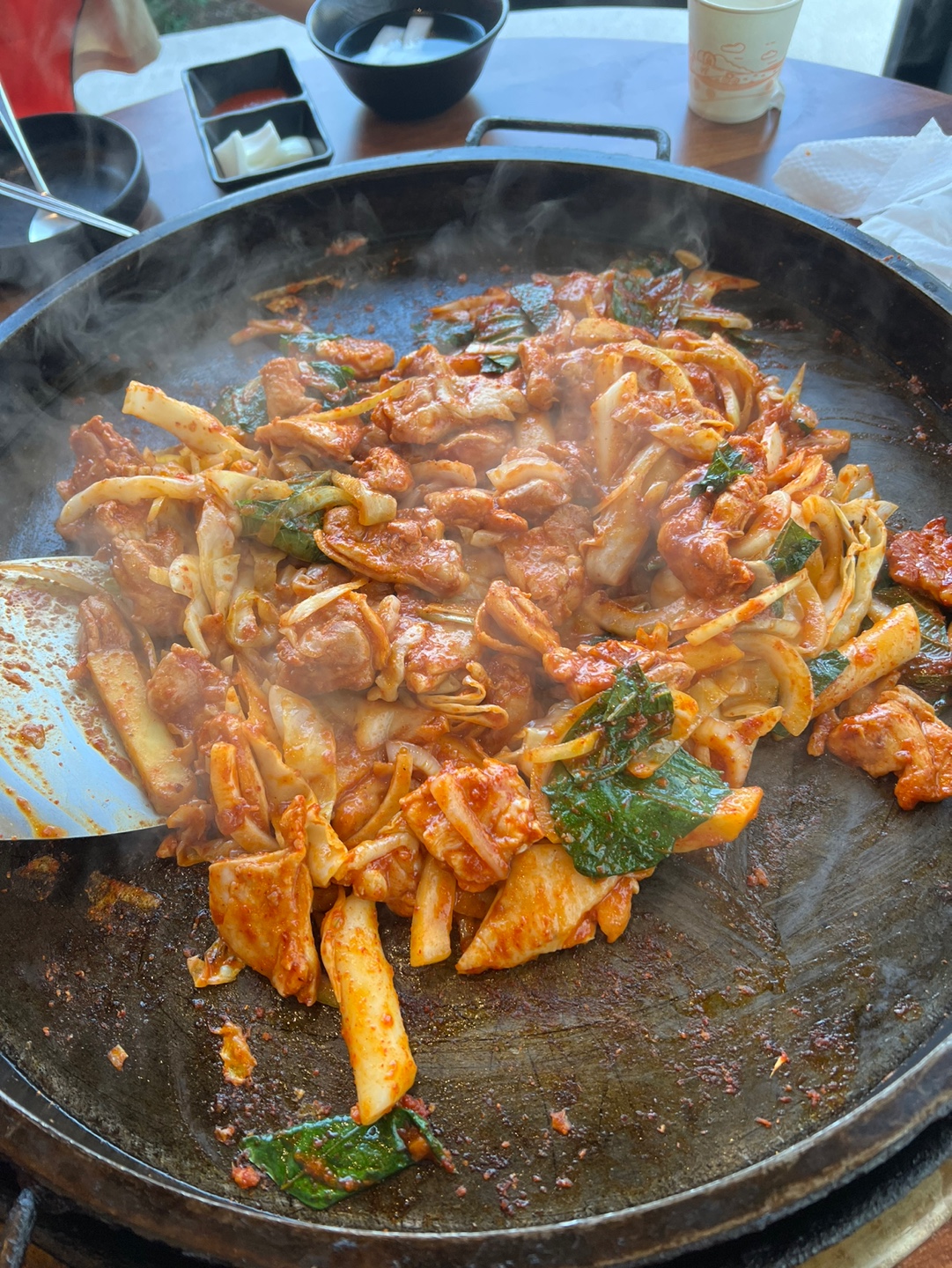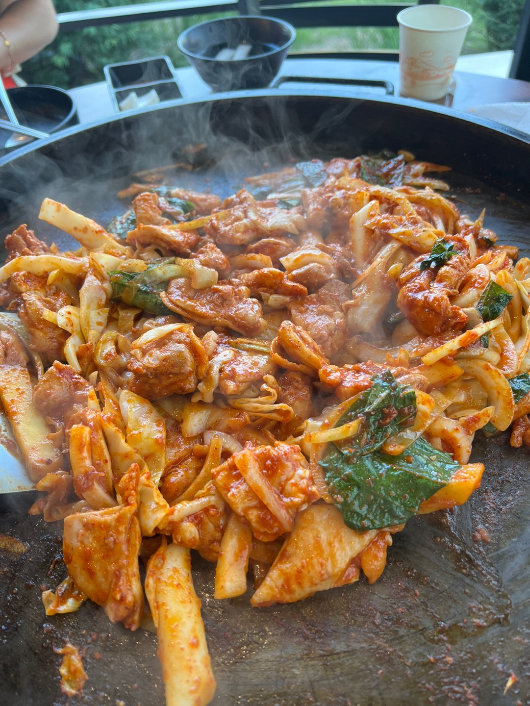 닭갈비는 다른 곳과 비교해서 엄청 맛있다는 건 아니었지만 주변 뷰를 보면서 먹으니 야외에서 먹는듯한 느낌이 들어 이 날은 참 맛있게 먹었습니다. 그리고 서울에서만 많이 먹어봤고 닭갈비로 유명한 춘천에서는 처음 먹어보는 거라 거기에 의미를 두었습니다.