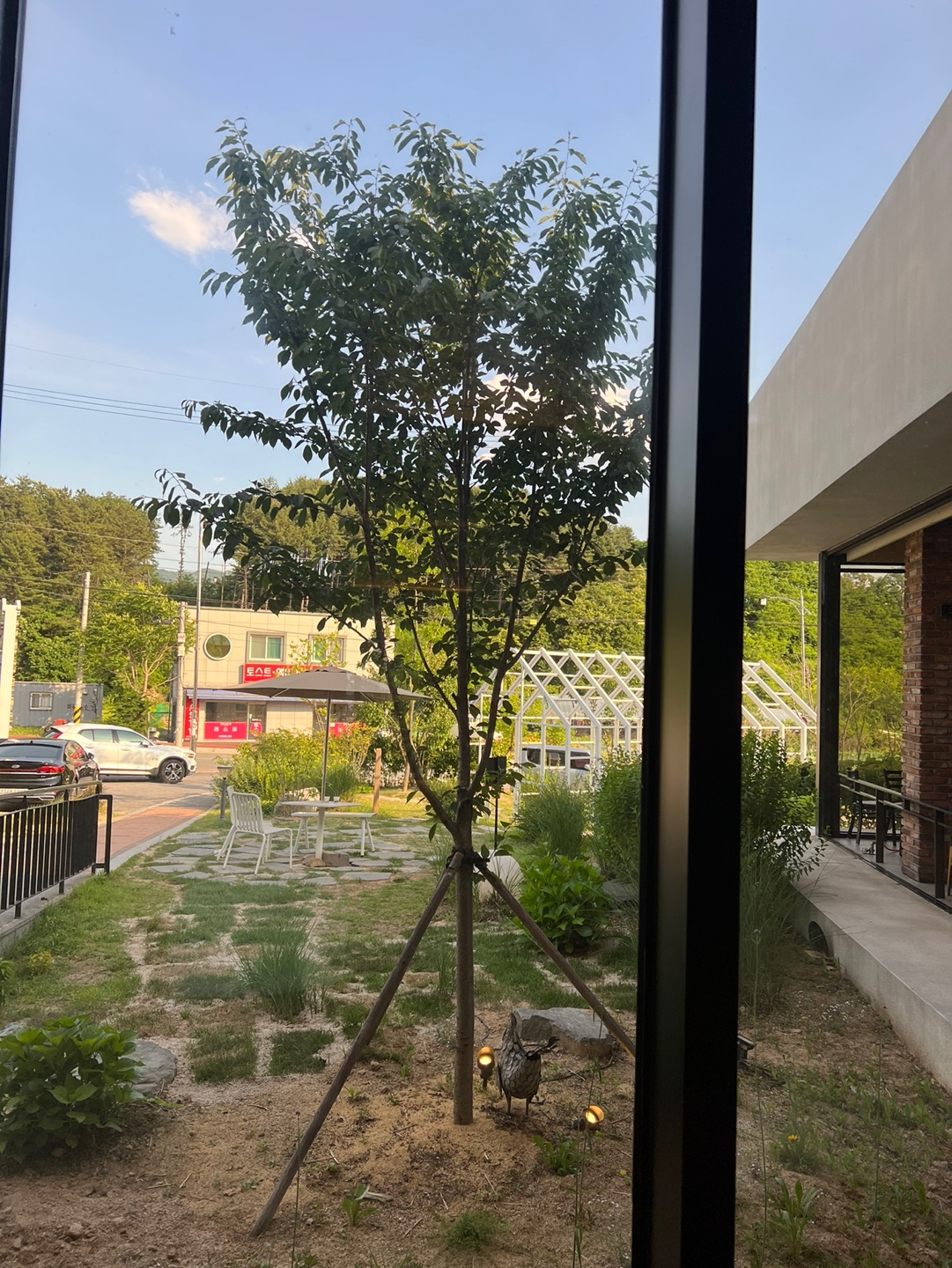 다른 블로그에서 본대로 외관은 굉장히 깔끔해서 좋았습니다. 주차장도 넓어서 편하게 주차할 수 있었고 차에서 내리자마자 창가에 아주 좋은 자리를 치우고 있길래 바로 그 자리에 앉을 수 있었습니다.