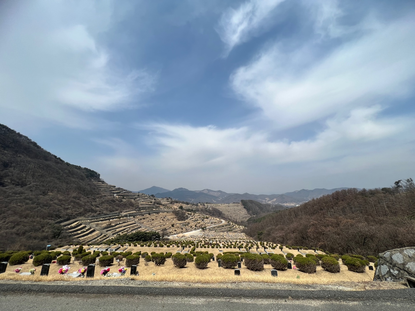 며칠 전 충주에 있는 진달래 메모리얼 파크 추모공원을 다녀왔습니다. 항상 다녀올 때마다 새롭고 시야가 완전히 트인 풍경 때문에 할 일 없을 때마다 가는 저의 쉼터이기도 합니다. 저희 아버지를 이곳에 모셨는데 올 때마다 가족들이 모여 항상 소풍 온듯한 느낌을 줍니다.