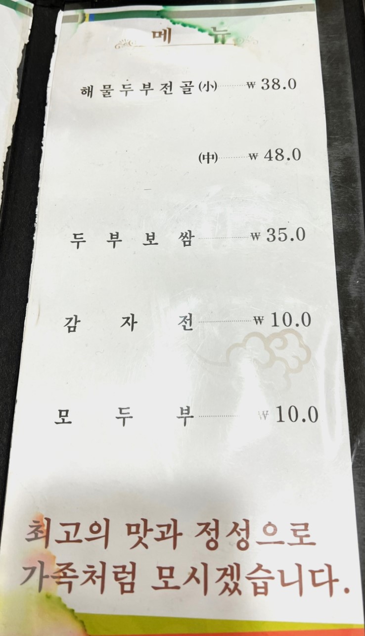 두부집이라 두부가 메인일 것 같았지만 해물이 메인이었습니다!