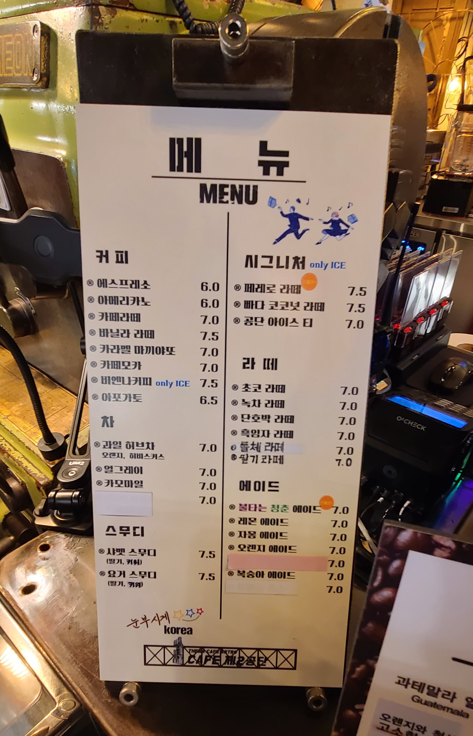 이곳은 커피가 남달리 맛있었는데 스폐셜 원두를 사용하여 직접 커피를 제조한다고 하는데 과테말라와 에티오피아 원두를 사용한다고 합니다.