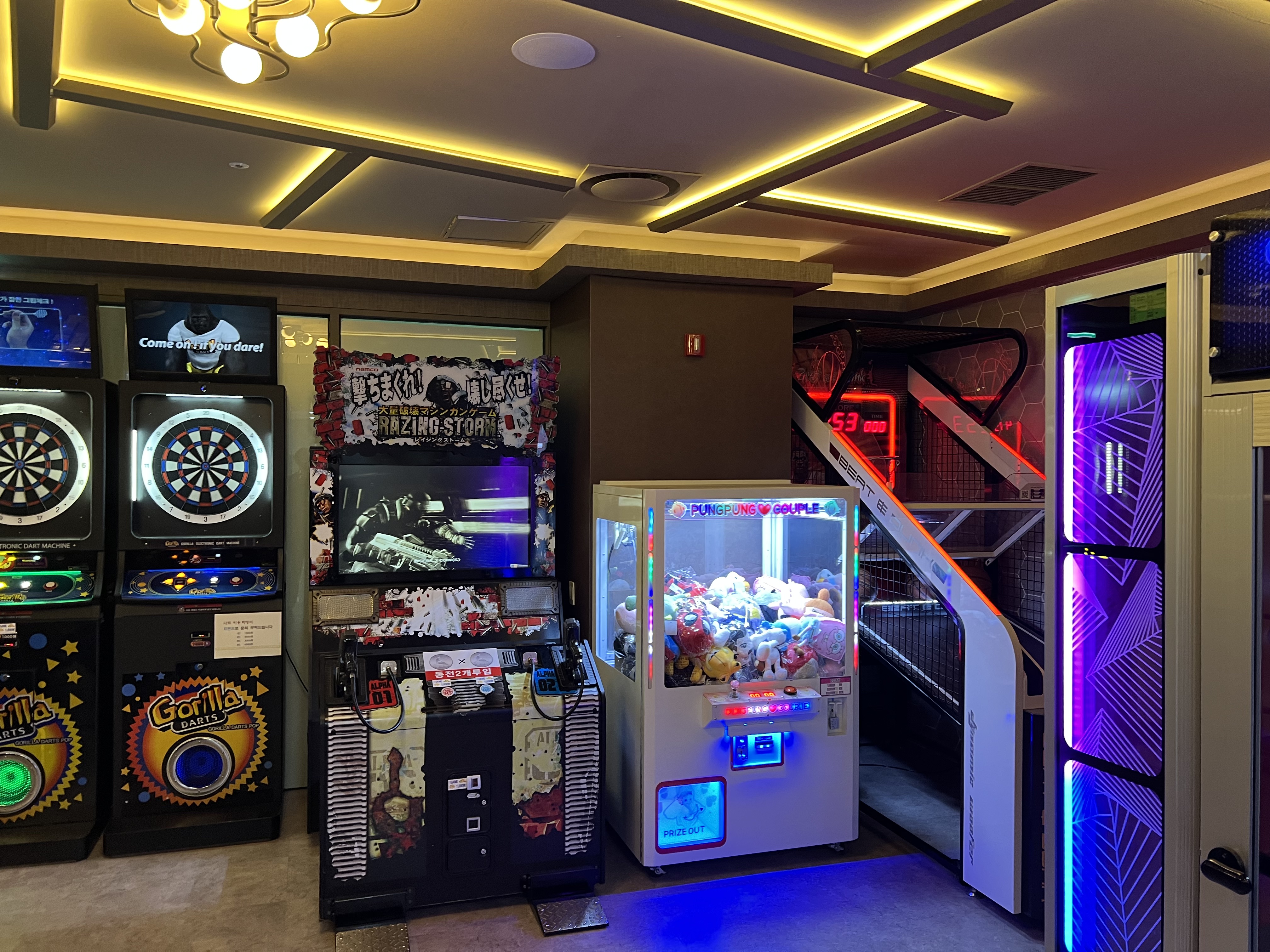 옆에는 대기자들을 위해 오락시설이 있었는데 농구장, 다트, 철권, 인형 뽑기 등 금방 시간 때울 수 있더라고요. 확실히 기억은 안 나지만 코인 노래방도 있었던 것 같습니다.