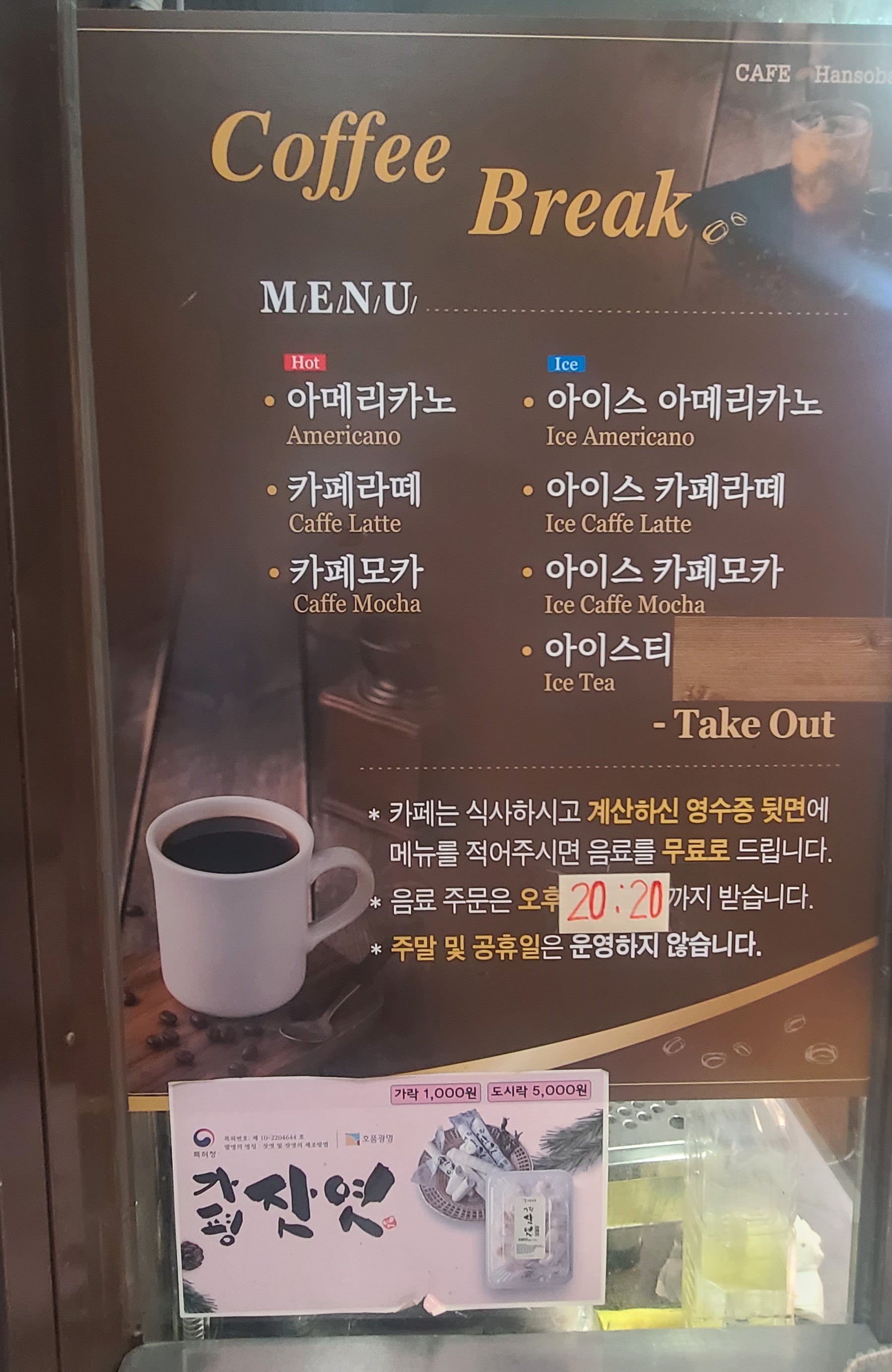 만약에 먹다 남기는 음식이 있다면 포장도 가능하니 참고하시길 바랍니다. 다 먹고 영수증을 제공하면 커피를 제공해주는데 주말에는 운영을 하지 않는다고 합니다. 포장을 해가는 분들도 많았는데 포장가격이 따로 있었습니다.