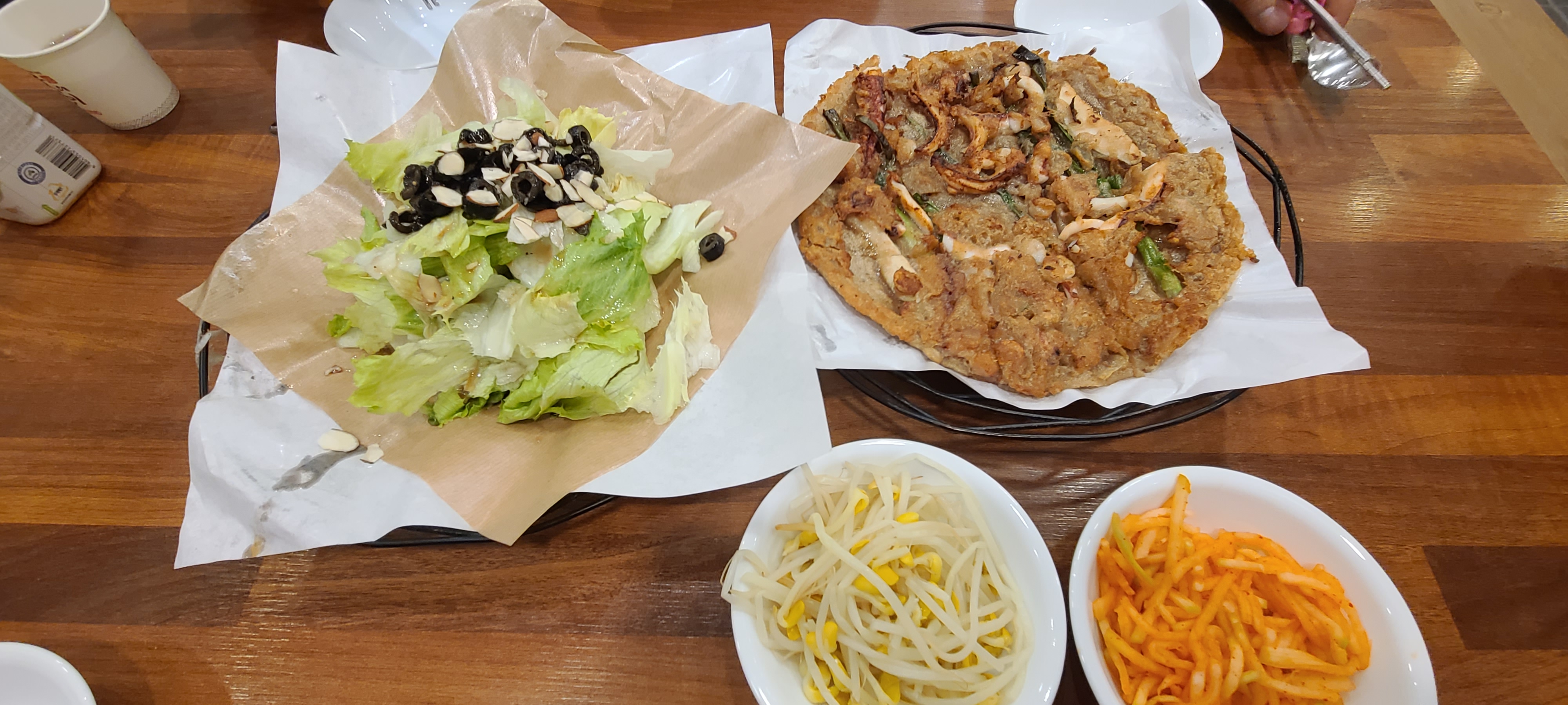 내부는 본관과 별관이 따로 있을 정도로 규모가 크고 수용인원도 많습니다. 올 때마다 세트메뉴를 시키는데 다른 사람들도 이 메뉴만 시키는 것 같습니다. 그러면 샐러드와 도토리전이 나오고 쭈꾸미와 도토리 묵사발이 나오는데 굉장히 가성비 좋게 먹을 수 있습니다.