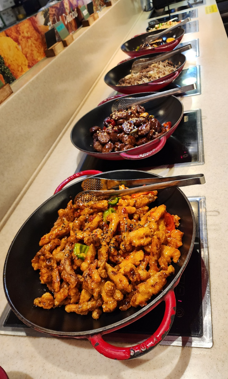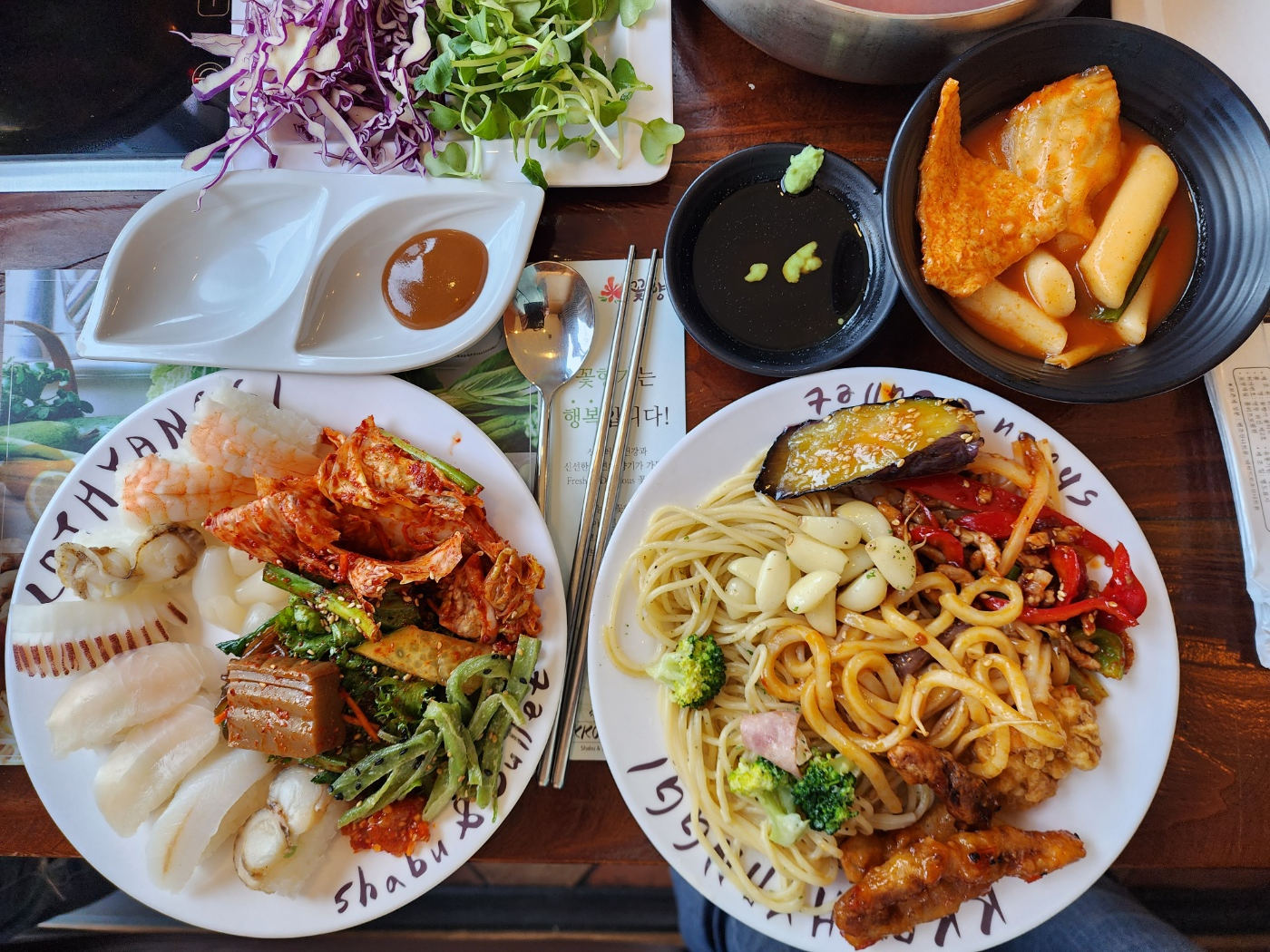 이곳은 샤브에 들어가는 야채는 굉장히 신선하며 기본적으로 샐러드도 굉장히 많이 있습니다. 그리고 다양한 종류의 튀김과 분식류, 해물볶음, 잡채, 탕수육 등 어향가지까지 맛볼 수 있습니다.