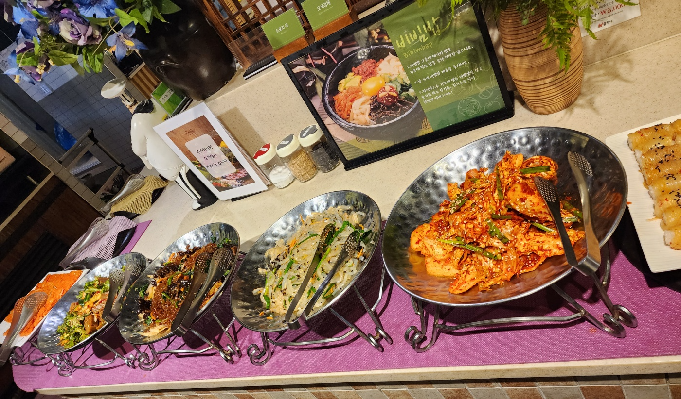 그리고 김치전과 소시지 전, 김치, 한식 반찬들도 많이 있고 밥도 있어서 한식을 좋아하시는 부모님들도 굉장히 좋아하는 메뉴가 많습니다.