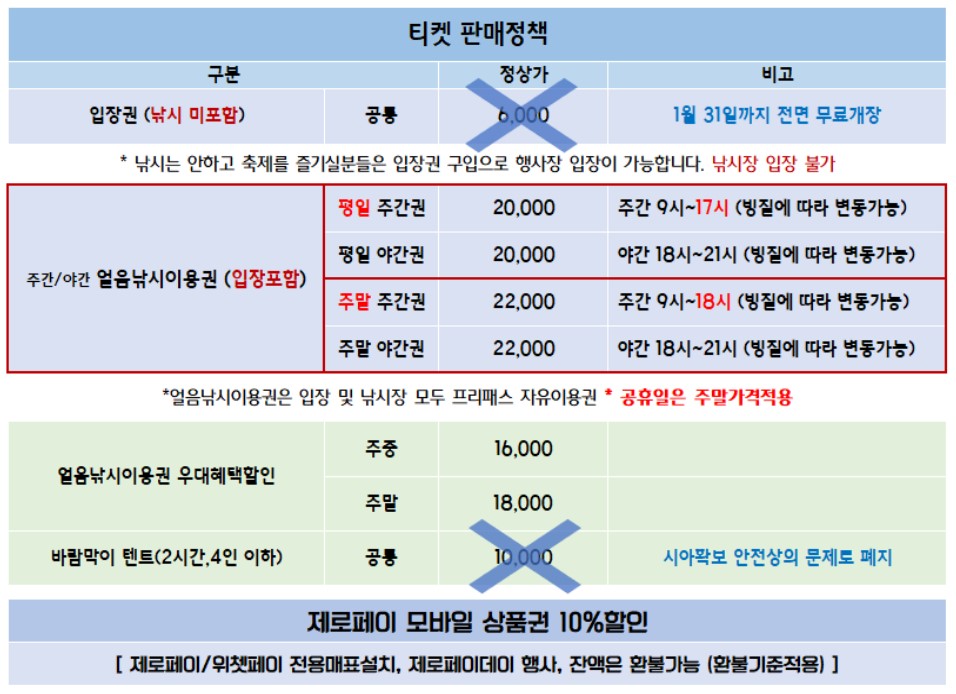축제 일정 및 시간 : 2023.01.01 ~ 2023.02.28 / 09:00 ~ 18:00 까지 축제를 즐길 수 있습니다.