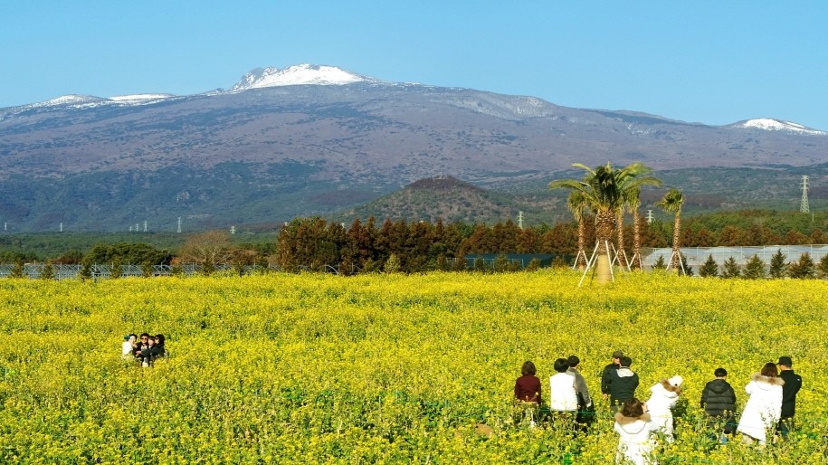 유채꽃을 보기 위해 관광객들이 많이 몰리자 개화시기를 앞당기는 연구를 해서 개량된 품종이라고 합니다.
