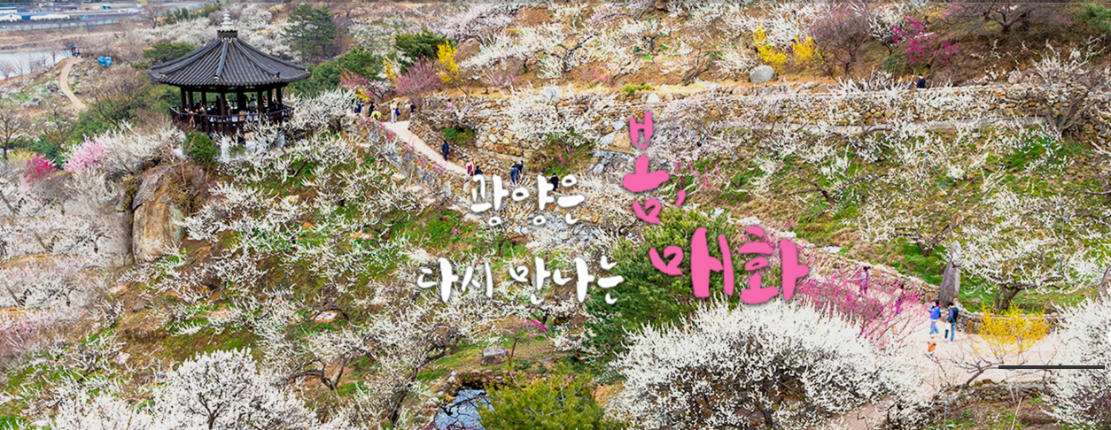 이 축제는 3/10 ~ 3/19까지 계속되는데 전국에서 가장 빨리 매화가 만발하는 곳으로 전국에서 오는 관광객들이 많고 가족이나 커플끼리 와서 아무 곳에서나 찍어도 엄청난 인생사진을 건질 수 있는 포인트가 많습니다.
