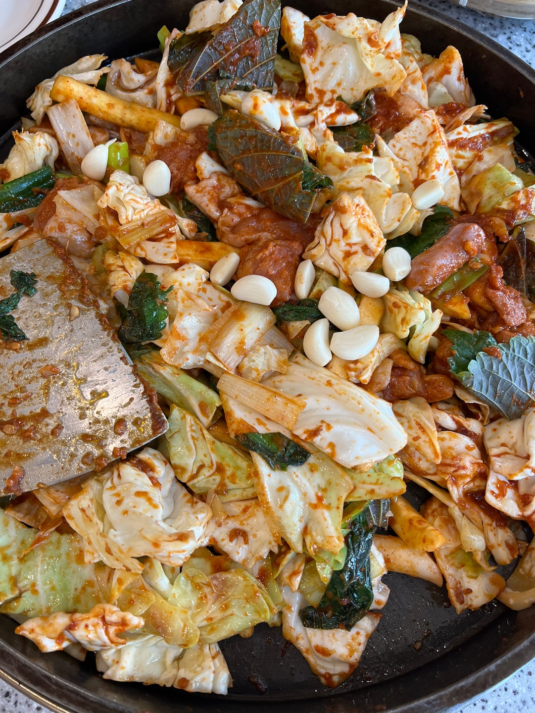 아무튼 닭갈비도 굉장히 양이 많았고 다릿살이라 퍽퍽하지 않고 부드러워서 계속 입으로 들어가니 2인분이었지만 엄청 배부르게 먹을 수 있었습니다.