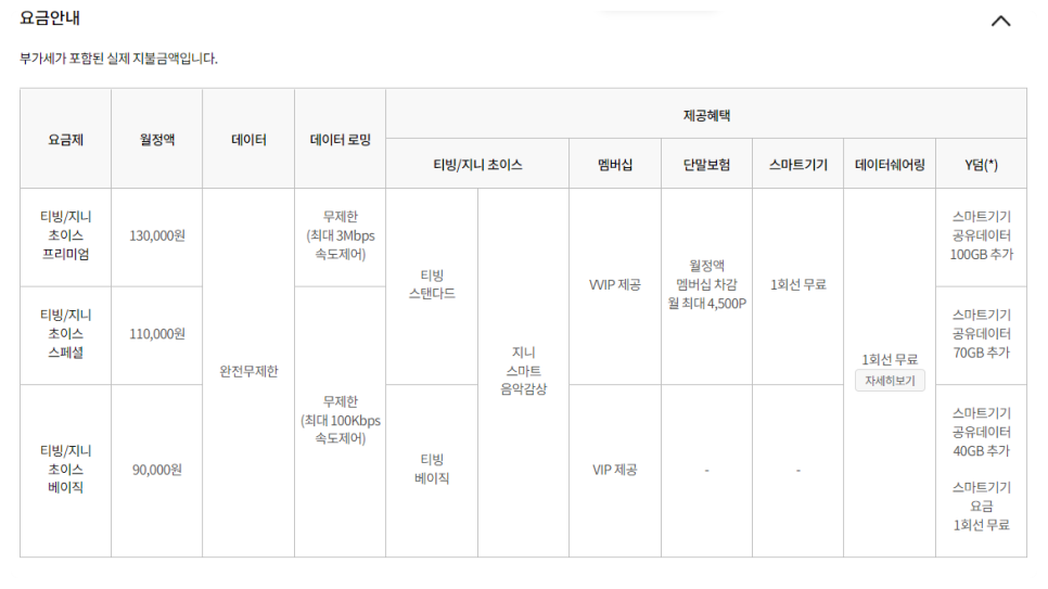 요금제에 따라 데이터 로밍 속도, 티빙의 등급이 달라지니 잘 알아보시고 가입하시는 게 좋을 것 같습니다.